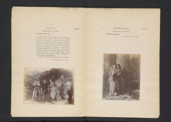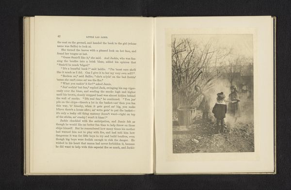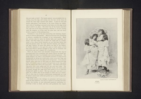 Editor: This photograph, "Drie kinderen op een stoep voor een huis" by Emma Justine Farnsworth, was taken before 1895. It's a gelatin silver print, so a very early example of photography as art. The image is of three children on some steps, and it has such a domestic, innocent quality. What do you see in this piece? Curator: Immediately, I am struck by the formal composition. Observe how the children are arranged, almost as if staged, creating a triangular form with their bodies. Consider the textural contrast; the soft, flowing dress of the girl in the center against the rougher textures of the stone steps and the implied vegetation behind them. How do you think that plays into the reading? Editor: I hadn't noticed that triangular structure before. So, you see it as very deliberate rather than just capturing a candid moment? Curator: Precisely. The artist controls the depth of field, directing our focus to the figures, almost flattening the background to emphasize their forms. Note the light falling unevenly, casting deep shadows that define the children's shapes. The overall effect isolates the figures from any social context, highlighting the aesthetic dimensions. Editor: It’s interesting how you remove it from a narrative. I was caught up in wondering about their lives, but you’ve focused on what’s within the frame itself. Curator: A close observation reveals Farnsworth's understanding of light and form. The details contribute to a reading beyond the children themselves and provide a glimpse into an earlier photographic technique, focusing on the purity of the subject, the tonal values and their inherent contrast, revealing, in essence, the nature of photography as an aesthetic end in itself. Editor: That completely changed how I see the image. Thanks! Curator: It was my pleasure. The more you contemplate how each choice of tonality and contrast guides your eye, the deeper the conversation can become.
