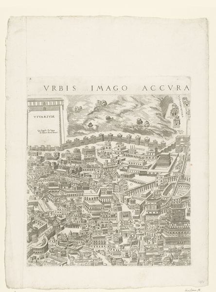 Editor: Here we have “Plattegrond van Rome in de Romeinse tijd (derde deel)”, a 1773 engraving. The level of detail is astounding; I'm really struck by the density and the rigid geometry of it all. How should we interpret this vision of Rome? Curator: I see this map as more than just a visual record of ancient Rome; it’s a statement about power, control, and the very construction of urban space. How do you think it reflects the social hierarchies of the time? Editor: Well, I can’t help but notice how many of the buildings seem dedicated to governance, performance, or military activities. Is that really a surprise, though? Curator: Not at all. Notice how the artist carefully delineates certain areas and emphasizes infrastructure. What does this suggest about the priorities and the very nature of Roman civilization at its peak? Who was included, who was excluded? Editor: I hadn't considered the element of exclusion, but it’s all pretty logical: enslaved people, for example, would’ve helped build many of the buildings that are shown. Are we meant to consider the labour behind everything depicted? Curator: Precisely! This piece asks us to think about whose stories are being told and whose are being intentionally omitted. The "grand narrative" often silences the voices and experiences of marginalized communities. Do you think an "objective" view is ever really possible? Editor: That's really thought-provoking; thank you. I initially saw a static representation, but it clearly embodies a complex social history, revealing what Rome chose to present and what it strategically concealed. Curator: Yes, reflecting on that act of curation, the choices inherent in any representation, reveals much about both the subject and the storyteller.