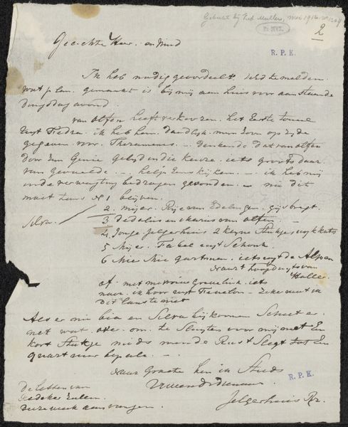 Editor: This delicate paper, titled "Kwitantie voor de levering van een encyclopedie" – Receipt for the delivery of an encyclopedia – is believed to be from 1778 and was created by Pierre Gosse Jr. It’s primarily ink on paper, a simple yet direct medium. It has an austere presence, a quiet mood... What catches your eye, what do you see in this piece? Curator: Primarily, I'm drawn to the surface—the texture of the paper itself and the marks left by the printing process and hand-written additions. Consider the formal arrangement of the text: the interplay between the various fonts and the neatness versus the scribbled out corrections. What effect does this interplay of textures and calculated inscription create? Editor: I hadn't really considered that, the sort of… controlled chaos, perhaps. It does feel more dynamic now that you point it out. Almost a collage of intent and accident. Curator: Exactly! Look closer still, at how the light plays across the fibers of the paper, creating subtle tonal shifts. It's about line and form. What do these graphic components signify? Does the careful ordering evoke a certain mood or sense of authority? Editor: I guess it brings an immediacy and almost an intimacy that feels at odds with the document's function. It's fascinating how looking at just the aesthetic and composition, removes you from thinking only of its role as just some old receipt. I would say that considering the artistic components enhances a sense of depth within the otherwise straightforward form. Curator: Precisely! Through formal analysis, we access layers of meaning we might otherwise overlook. This humble receipt becomes an intriguing visual experience when considered thoughtfully and meticulously.