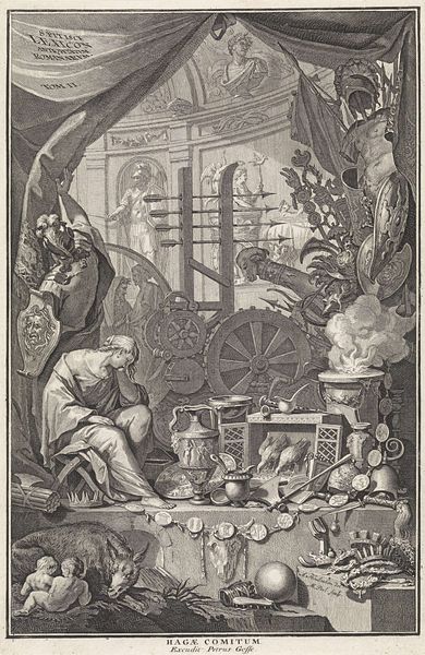 Editor: Here we have Jacob Folkema's engraving, "Stedenmaagd van Haarlem legt de eed af," from 1751, currently residing in the Rijksmuseum. The level of detail is incredible for an engraving. What strikes me is the almost theatrical staging. What's your take on this piece? Curator: This work is ripe with political and social commentary typical of the Baroque. The 'Stedenmaagd,' or the city maiden, embodies Haarlem itself, literally swearing an oath. The figures, though allegorical, participate in a crucial dialogue about power and civic duty. Notice the subjugated figure beneath her – a potent symbol of Haarlem’s dominance. Do you see any immediate parallels with contemporary socio-political issues? Editor: Well, the idea of representing a city as a female figure certainly evokes a conversation around gendered power dynamics. The maiden's oath seems very symbolic... What specific "handvesten" would she be referring to, do you think? Curator: The ‘handvesten’ were the city’s charters, documents that enshrined its rights and privileges. In that sense, the image can be read as the city itself reaffirming its autonomy against external powers. Moreover, consider the time this engraving was made. The Dutch Republic was grappling with internal divisions, so the imagery subtly reminds viewers of Haarlem's unique historical position and calls for renewed commitment to these founding principles. What is also revealing are the heraldic coats of arms and emblems of other civic figures from Haarlem adorning the periphery, forming a canonized, idealised group. Editor: That makes the piece even more layered! So, beyond its artistic merit, the work operates as a political statement, reflecting on Haarlem's sovereignty within a changing Republic. Curator: Precisely. It encourages a conversation on how cities shape and define their identities through representation. It provokes conversations about what charters could or should mean now in societies across the globe. Editor: I see this engraving now with fresh eyes. It’s a call to recognize how identity and place intersect with history. Curator: Exactly. By understanding these historical contexts, we can begin to engage in informed conversations about whose stories are being told—and whose are being excluded.