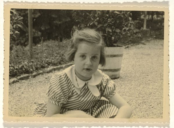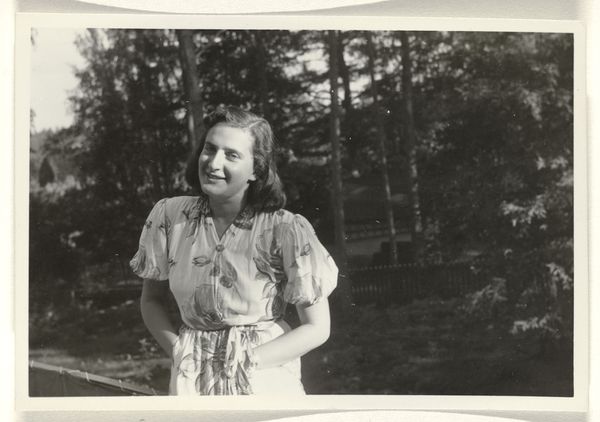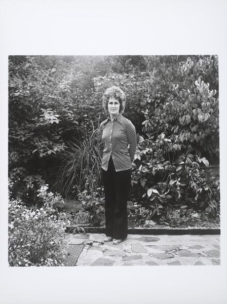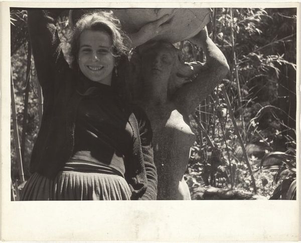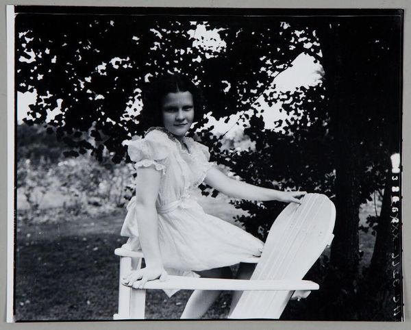Editor: Here we have an untitled gelatin silver print, dated sometime between 1956 and 1973, depicting Isabel Wachenheimer seated on a bench in a wooded area. There's a real intimacy in this image; a simple, almost casual portrait. How do you read this photograph? Curator: For me, this image speaks to the labour of leisure and the production of photographic memory. Think about it: the gelatin silver print process itself, requiring skilled hands and specific materials – chemicals, paper, a camera. The act of posing, the staging of this "candid" moment… these are all forms of work. Who produced the bench? Who maintained the forest, even? This isn’t just about capturing a likeness; it's about the systems and industries that allow this moment to be recorded and disseminated. What kind of labour do you see here? Editor: That’s a fascinating take! I hadn't considered the bench as anything beyond a prop, but framing it as part of the broader production really reframes my thinking. There's the labour of sitting still, of performance as well, right? Posing, trying to look natural when one is hyper-aware. Curator: Exactly. And think about the labor involved after the picture is taken, developing, printing, distributing…Each step necessitates various contributions that extend beyond Wachenheimer's likeness, reflecting complex historical-economic structures related to photography in post-war Europe. Editor: So it's about reading beyond the surface image to unpack these layers of making. I'm realizing that what felt "simple" is actually a point where numerous production lines intersect. Curator: Precisely. This photograph shows us that materials aren’t neutral. By focusing on what this picture *is*, materially and historically, we understand the bigger world around it. Editor: Thanks! I’ll never look at casual portraiture the same way again!