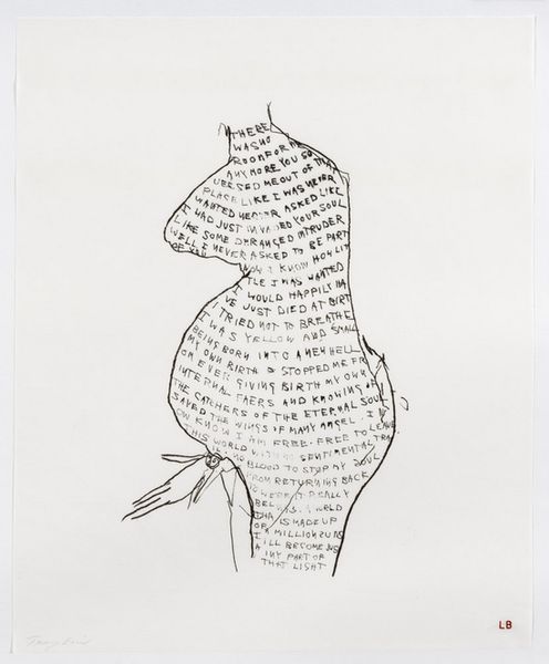 Curator: This is an intriguing page alteration by Esq Tom Phillips. He's taken the text of an existing book page and transformed it into something altogether new. It has no title. Editor: My first thought is of a storm cloud. The way the text has been obscured and highlighted creates this turbulent, almost oppressive atmosphere. Curator: Exactly! Phillips uses these erasures and embellishments as a kind of visual poetry. Note how certain phrases are isolated in cloud-like forms, like the haunting line: "I will come to you once more a poet." Editor: The highlighted fragments become powerful symbols. Mrs. Schilizzi and her flower-like eyes suggest themes of memory, loss, and perhaps, a yearning for beauty amidst chaos. Curator: It's a testament to how potent words can be, even when partially concealed. He's showing us how we make meaning from fragments. Editor: This piece evokes a sense of rediscovering the magic hidden within the mundane. Curator: And sometimes, acknowledging the darkness is a part of finding that magic.