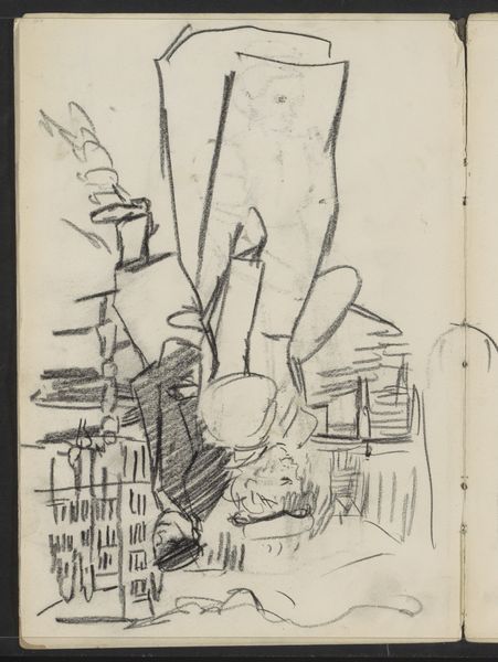 Curator: This pen and ink drawing on paper, "Indramning til et program?"—or, "Framing for a Program?"—dates from 1882 and is held at the Statens Museum for Kunst. What's your initial read on it? Editor: The contrast is really striking. The fine linework against all that open, undefined space. It creates a feeling of expectancy. And this use of framing is certainly not what one usually sees. Curator: Absolutely. Look at the clear depiction of the artist’s materials – the ink itself, the paper substrate – it brings attention to the conditions under which this object came into being, and encourages one to reflect on the labour involved. We also see a painter's palette with the ink-filled paint reservoirs which makes me consider the costs and labour of acquiring and importing these painting and drawing materials from afar. Editor: Good points, and what immediately strikes me is how the drawing itself suggests something about art institutions in the 19th century. It almost feels like a draft for the cover of a program, maybe for a theatrical performance or a musical recital. Curator: Yes, the blank area in the middle would accommodate text or a printed image perhaps. It feels utilitarian even though it carries this sophisticated aesthetic quality, but still a far cry from a mass-produced object. Editor: The image itself blends nature – look at the foliage framing the top – with artistic creation. The young artist nestled in the corner and her palette almost suggest artistic genesis in natural beauty. One gets a sense of an established visual culture that emphasizes both. The date etched right into the paper almost signals to me how imagery became more widespread with the advances of reproduction techniques in printmaking during this era. Curator: That link between art and nature… How the artist is drawing under the corner section – the boundary where the foliage sits atop the 'wall' or barrier as it were - raises questions of hierarchies. Is drawing the flowers considered less or more work than whatever might fill in the frame? Editor: Exactly. So it's really an image steeped in the conventions and expectations of the art world. It encourages a discussion of the social function of art, and its evolving role at a very interesting time in cultural history. Curator: Yes, reflecting back to me how artistic practice can only exist if it's supported by these structures that exist outside the act of creating in the studio! Thank you, that perspective is invaluable to appreciating the labour required. Editor: Likewise. The dialogue between materiality, purpose and production has offered a lens for exploring this captivating work.
