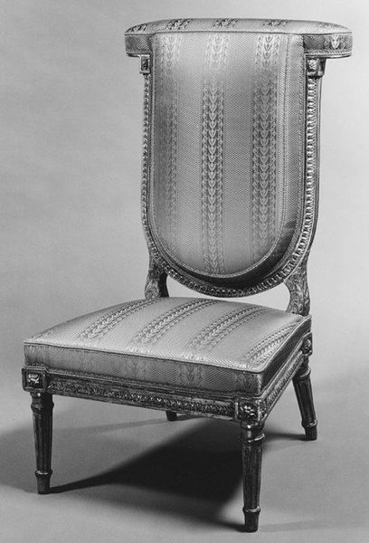 Bernard II van Risenburgh created this work and writing table, or "table en chiffonière," in the 18th century. Its dimensions are 27 x 13-3/4 x 10-5/8 inches. Notice how the marquetry on the top and shelf creates a starburst pattern, drawing the eye inward. The curvilinear cabriole legs add a sense of lightness, contrasting with the solid, dark wood. Silver or gilded bronze mounts punctuate the corners and edges, providing a visual rhythm that emphasizes the table's structure. Van Risenburgh's design reflects the Rococo period's love for asymmetry and ornamentation. Yet, this table also hints at nascent Neoclassical restraint through its relatively simple form. The table exists between two aesthetics. Consider how the table embodies the spatial dynamics of its time. Does the piece destabilize established meanings or values? The table remains a testament to the shifting tastes of 18th-century design.