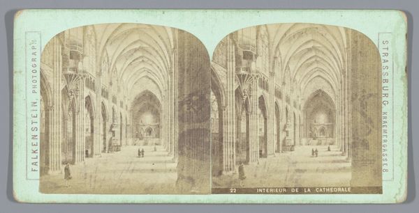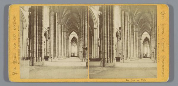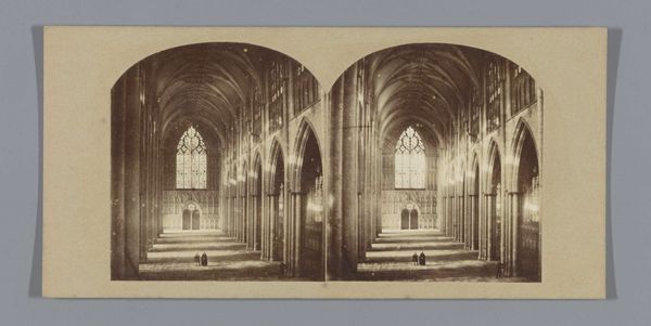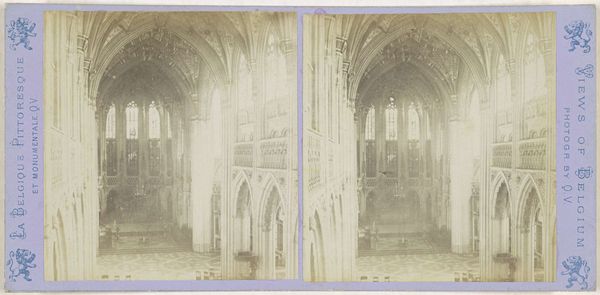 Editor: So, this is “Interieur van de Sint-Romboutskathedraal in Mechelen” taken between 1866 and 1870 by Jules Hippolyte Quévall, a gelatin silver print held at the Rijksmuseum. The way the light falls really makes me feel like I’m standing in that very spot! What can you tell me about this work? Curator: The print’s very creation speaks to shifts in both photographic and architectural consumption. How did Quévall’s process enable wider access to, and even potential modification of, established monuments? The choice of gelatin silver suggests a deliberate focus on mass production; consider the labour needed, the materials sourced, the intended audience for these architectural views. Was this meant for the elite, or something more democratized? Editor: Democratized architecture, interesting! What sort of impact would making architectural imagery available in a print format like this have on the public and consumption of these buildings? Curator: Think about how photography altered the understanding of space, craft and labour itself. These images were commodities, transforming experiences into objects. Did this cheapen the original spiritual purpose of the building, or did it disseminate architectural knowledge, transforming viewers into consumers of culture in a whole new way? And how do these photographic reproductions compare to the building itself? Editor: So the means of producing and distributing these photos directly informs how people see and relate to this architecture? It’s not just about the image, it’s about the context of its creation and the people who engaged with it! Thanks, I see it now. Curator: Precisely. Looking at art from the vantage of material culture is essential for getting an interdisciplinary and wholistic understanding of visual material!