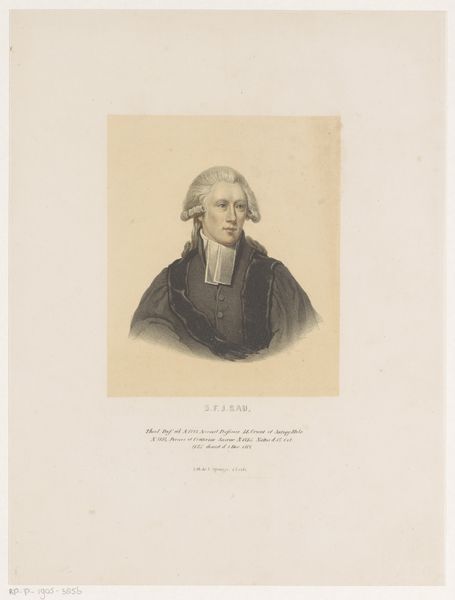 Editor: So here we have "Portret van Hermanus Boerhaave," an engraving by Leendert Springer from around 1850. There's something about the direct gaze and formal attire that makes me think of Enlightenment ideals, a kind of serious, academic dignity. What catches your eye when you look at this print? Curator: You know, it's funny, because that "academic dignity," as you so perfectly phrased it, also makes me chuckle. Look at that wig! It’s like a powdered cloud threatening to envelop him. This print, to me, is a conversation about the layers of performance inherent in portraiture, especially those depicting prominent figures. It captures a specific era grappling with identity, where outward presentation was everything. What do you make of the medium, the engraving itself? Editor: I see that engraving lends itself to that formal, almost severe, feeling. It’s precise, detailed... unlike, say, a looser sketch. Curator: Exactly! The rigid lines mirror the subject's controlled persona, but also highlight the inherent artificiality. Don’t you find the engraver is subtly commenting on this artificiality by emphasizing these very controlled lines and details? A wink and a nod, perhaps? Editor: I hadn't thought of it that way! I guess I was so caught up in the apparent seriousness of the subject that I missed the humor. Thanks for pointing that out! Curator: Isn't that the beauty of art? There is a surface story and something deeper at play! It invites us to reassess and reimagine narratives we thought we understood. This portrait seems to whisper: never take yourself too seriously. Editor: Absolutely. I will never look at an engraving in the same way again!