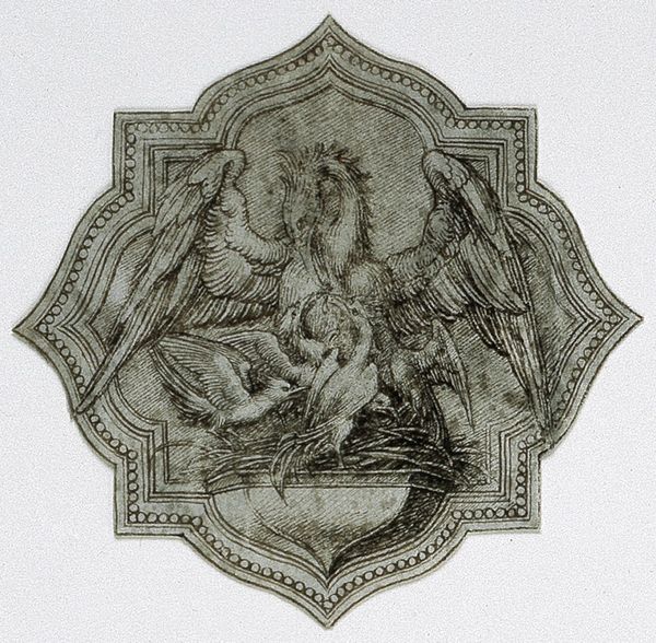 Curator: Before us, we have Elihu Vedder’s "Cartoon for Jupiter," a colored pencil and pencil drawing from 1893. It's quite striking. Editor: My first impression is a kind of… subdued grandeur. The muted colors give it a somewhat melancholic feel, despite the obviously powerful figure depicted. It makes me think about power and its burdens. Curator: That's a fascinating reading. Consider that Jupiter, in Roman mythology, is the king of the gods, associated with law, order, and governance. Vedder’s rendition certainly reflects this traditional iconography but, as you note, tinged with a sense of pensiveness, the brow furrowed. The eagle at his feet reinforces his dominion, it’s Jupiter’s traditional attribute as well. Editor: Absolutely. But looking closer, the context is vital. Vedder was part of the American Renaissance, seeking to establish a cultural identity tied to European traditions. In this sense, appropriating classical mythology speaks volumes about the aspirations – and potential pitfalls – of a nation trying to define itself through art. It hints at ideas around immigration and nationality itself in the construction of power and art. Curator: And the choice of media lends itself well to this symbolic tension, doesn’t it? Pencil and colored pencil… these aren't the typical grand materials of state portraits like oils or sculpture. It feels more approachable, almost like a blueprint. Editor: I agree. And Vedder’s inclusion of details like the small, almost hidden, cherubic figure nestled by Jupiter’s throne really complicate that idea of infallible power, it also seems like another way to signal towards classicism. I also see some dates with a 4 and some laurel. What does that tell us? Curator: Ah! Look closer and you’ll notice there is also a ‘July’ there, as well as an American flag held by that putto! The ‘Cartoon for Jupiter’ was made as preparatory drawing for a mosaic at the Library of Congress’ Northwest Pavilion, also housing other drawings on Minerva, Apollo and others. It celebrates core symbolic features of the American identity through the classic form, referencing American values to ancient Roman symbols of power, arts, or reason. It signals at its core, to the symbolic role of those ideas for Americans at that specific time. Editor: That adds so much. It is indeed very telling about how America envisioned its own mythology and values through this appropriation of classical symbols at the turn of the century, isn't it? Thanks, this piece truly does reflect so many social values we still discuss today. Curator: My pleasure. Seeing how lasting icons change and adapt over time is always revealing.