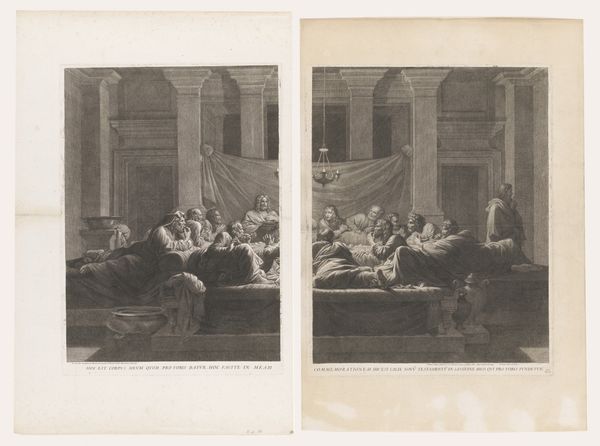 Curator: Welcome. Before us we have a gelatin silver print, a photographic reproduction of Leonardo da Vinci's iconic "The Last Supper." This particular version was created sometime between 1850 and 1900 by Fratelli Alinari. Editor: It feels like a whisper of the Renaissance. A hushed retelling of a well-known story, almost ghostlike in its monochrome palette. Curator: Indeed. The Alinari brothers were masters of art reproduction, helping to disseminate artistic treasures across Europe. Consider the power of this technology to spread images to wider audiences. Editor: Absolutely, it's about democratization but also about control. Who gets to see, and how, often reinforces existing hierarchies. How did they frame this image to serve the Church, the state, or perhaps, a burgeoning tourist industry? Curator: The Alinari's were, for the most part, documenting Italian art, architecture, and culture. Photography afforded them accuracy and consistency—things increasingly valued by art historical study. The piece is clearly "Academic art," emulating that traditional aesthetic through a modern medium. Editor: The historical context is very important. Think of the rise of photography, colonialism, and shifting religious landscapes. Did this image, intentionally or not, reinforce certain power structures? Who was in control of the gaze? Who benefited from its circulation? Curator: That's an interesting perspective. Photography introduced a new form of documentation. This print isn't trying to offer commentary; it’s offering access. Da Vinci’s original was already centuries old. Here’s an attempt at preserving it. Editor: Preservation for whom, though? Whose story gets told, and how? Even the act of copying, framing, and disseminating involves a viewpoint. This photograph serves not only as documentation, but as another form of interpretation. Curator: It's remarkable to see how techniques evolved and how art endures across different media. The Alinari Brothers captured something of that Renaissance genius. Editor: A potent reminder that art isn't just created; it's constantly being reshaped, reinterpreted, and redeployed to communicate different values in society. Food for thought indeed!
