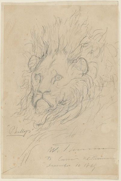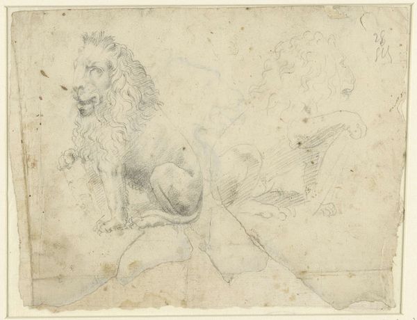 Editor: This drawing, simply titled "Lion," is an undated work by Sawrey Gilpin. It appears to be rendered in pencil or graphite on paper, currently residing at the Art Institute of Chicago. The sketch-like quality gives it an ephemeral feel, as though the lion might fade away. What draws your eye when you look at this image? Curator: The lion, across cultures and time, is so much more than a big cat. He embodies royalty, courage, and even divinity. Consider the lion imagery associated with kings like Richard the Lionheart, or the Lion of Judah. Editor: So, it’s not just about a realistic portrayal of an animal? Curator: Not entirely. While Gilpin's skill is evident, this drawing resonates with symbolic weight. Note the detail around the face versus the sketchier body. The artist emphasizes the lion's gaze, imbuing it with human-like intelligence and authority. The lion's been used to represent power structures, hasn’t he? What emotional effect do you think it has on the viewer? Editor: I think there is this feeling of admiration, mixed with the sense of maybe feeling threatened, and some sympathy because he's held in captivity. It’s quite complex! Curator: Exactly. And that tension—the awe, the fear, the empathy—speaks to the lasting power of symbols and how they continue to evoke feelings across generations. Editor: I see the cultural relevance more clearly now, I had not initially made that connection, but now understand there is much more than an image of a lion on paper.