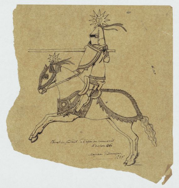 Editor: Here we have James McLellan's "Centaur Weather Vane" from around 1938, made using coloured pencil. The texture is really interesting – almost like a bronze sculpture but rendered in pencil. It's so solid and monumental! What strikes you about this piece? Curator: The process of transforming an idea for a functional object, a weather vane, into a representational drawing fascinates me. McLellan’s use of coloured pencil isn't merely decorative. Think about the labor involved. He's meticulously mimicking the qualities of tooled metal: the subtle shifts in color, the suggestion of weight and solidity. Consider, too, that during this period there was ongoing artistic exploration of what constitutes ‘high’ art and ‘low’ craft. Do you see this tension at play here? Editor: Definitely! The subject matter itself - a weather vane - is inherently practical, blurring that line. Is he trying to elevate a humble object through artistic skill? Curator: Precisely. By dedicating this much time and expertise to rendering what is essentially a design for a manufactured item, McLellan calls into question those very divisions. How does the finished drawing affect its eventual realization as a functional piece of craft? Does the inherent artistry impact its social use value or commodification? Editor: It adds a layer of intended artistry right at its source, doesn't it? I guess it could affect the price, adding value for a buyer looking for quality. Curator: Exactly! Furthermore, consider the broader social context: the Great Depression. This image reflects an emphasis on labor and potential future production that connects art to everyday life. Editor: That's something I hadn't considered. So it’s less about the mythological creature itself and more about the commentary on materials, production and value in a specific moment? Curator: The material reality and the work itself give form to new meanings! It seems to show a society in search of tangible commodities to guide direction – both literal (the weather vane) and metaphorical. It makes one realize the many forms and function that Art can acquire. Editor: Thank you! This definitely changes how I look at preliminary drawings for objects.