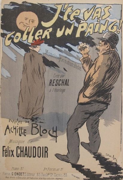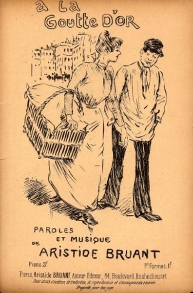 Théophile Alexandre Steinlen created this lithographic print, "Au Jardin Du Luxembourg," a song sheet cover, using the process of lithography. This commercial medium involved drawing on a flat stone surface with a greasy crayon, treating it with chemicals, and then printing from the stone. The flat, graphic style shows the influence of Japanese prints, popular at the time. We can see the process at work in the bold lines and solid blocks of color, which combine to create a scene of everyday life with social commentary. The print shows a mother and child watched over by soldiers, presumably in the Luxembourg Gardens. Lithography allowed for mass production, making art accessible to a wider audience. The print exemplifies how artistic techniques historically associated with craft and commercial application, could elevate everyday subjects and engage with broader social issues of class, labor, and leisure, which are at the core of art history.