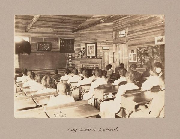 Curator: William A. Webster created "Defectives, Feeble-minded: United States. Massachusetts. Waverly. School for Feeble-minded: Massachusetts School for the Feeble-Minded.: Drawing - Advanced Class." Editor: It’s a strikingly symmetrical composition, and rather somber given the context. Curator: Indeed. The photograph offers a peek into the Massachusetts School for the Feeble-Minded, a place marked by now-outdated ideas about cognitive ability. Editor: The even lighting emphasizes the uniformity, almost a forced order that permeates the scene. The teacher is isolated to the right, facing away. Curator: The picture serves as a stark reminder of how institutions categorized and treated individuals deemed "feeble-minded" in the early 20th century. It's unsettling to observe how such social structures influenced the lives of the students. Editor: It’s hard to ignore the parallel lines and right angles that dominate the scene, they speak volumes about the constraints imposed. Curator: Understanding the history helps us see the evolution of social and educational norms, even if it's uncomfortable. Editor: Yes, even with its compositional clarity, there is a lingering, disquieting mood.