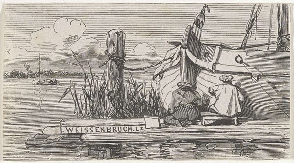 Curator: Steffelaar's pen and ink drawing, "Rowboat on the Shore," done in 1845, feels almost like a memory flickering on the page. A simple structure, boat resting... what strikes you first? Editor: Definitely the precarious tilt of the rowboat. It’s beached at such an angle, defying gravity. There's a strange calmness to that tension, like holding your breath underwater. Curator: You’ve captured something essential there. Knowing Steffelaar, I'd bet this wasn't some grand commission, but more of a doodle from his sketchbook. Editor: Ah, so a snatched moment. Looking closer, you get the sense of quiet labor here, everyday existence tied to the water's edge. Who lives here, you wonder? What's their story? I see labor in this image; maybe even exploitation if we think about 1845's power relations? Curator: Interesting, interesting! It really does feel as though the landscape bears witness. Think of it as Steffelaar trying to sketch, capture the place as a social space more than just "oh look at the boat". Editor: Exactly, you nailed it; a sense of witnessing seeps into this image. We bring so many connotations with our own experience, like how art institutions try to speak for art, maybe also make art political. That simple thatched-roof dwelling... is it idyllic, or is it a symbol of precarity? Curator: Precisely. But the raw immediacy in his scratchy line work saves it from feeling staged or sentimental. It speaks a deeper truth, don't you think? There is a genuineness here which feels really present. I can almost hear the seagulls. Editor: You're right, the scratchiness humanizes it. In a world of slick artifice, Steffelaar reminds us to see the quiet beauty and stark realities. It is a useful window into 19th century culture... I wonder about that shadow from the boat; how did he decide that perspective. Curator: A quiet conversation starter, and proof that profound ideas can emerge from the humblest of sketches! Editor: Right you are; may we continue asking new questions in that spirit!
