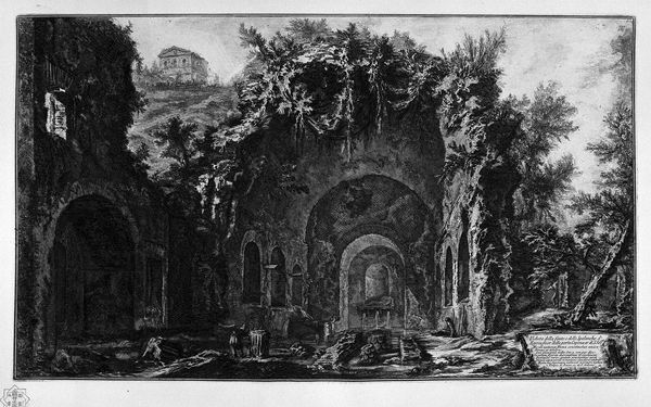 Giovanni Battista Piranesi created this etching, "The so-called Grotto of Egeria," capturing a vision of ancient Rome as filtered through the lens of the 18th century. Piranesi's Rome was one of layered histories, where classical grandeur coexisted with decay. He portrays a space believed to be the sanctuary of the nymph Egeria, who advised the Roman King Numa Pompilius. But notice how Piranesi presents the grotto not as a site of pristine myth, but as a ruin, overgrown and reclaimed by nature. The figures in the foreground seem dwarfed by the scale of the architecture, inviting us to contemplate the passage of time and the transience of human endeavor. This wasn’t just documentation; Piranesi was creating an atmosphere, and it asks us to consider how the past is never truly gone, but continues to shape our present.