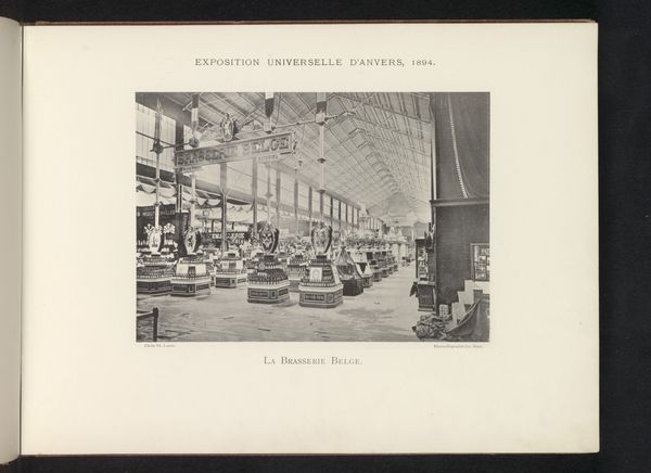 Curator: Right now, we are looking at a photograph taken by Th. Lantin in 1894. It’s titled "Expositie van Belgische objecten tijdens de wereldtentoonstelling te Antwerpen", which translates to "Exposition of Belgian Objects During the World's Fair in Antwerp". Editor: Whoa, instant flashback to steampunk novels! All those intricate displays and the sheer scale... I get a vibe of boundless ambition mixed with a touch of melancholy, like the party’s almost over. Curator: It is quite a visual record. These World's Fairs were key sites for displaying national identity and industrial progress. Notice the architecture of the hall itself: its grand scale, use of glass and iron, signalling modernity. Editor: Totally, I see the ambition. But something about the emptiness, like there are ghosts in this machine, all polished up with nowhere to go. Curator: These expositions served as critical propaganda, reinforcing concepts of progress, innovation and a specific national identity, particularly useful given ongoing class tensions during this period of intense industrialisation. What we're seeing isn’t just Belgian products, but a deliberate presentation of Belgian industrial self-image. Editor: Hmmm… You’re seeing the politics, I’m feeling the echoes of it. Makes you wonder who this spectacle was *really* for, and at what cost. Like looking at a Victorian fever dream, grand and maybe just a little bit unsettling. Curator: A perfect summation, actually. The Fair aimed at showing the global audience Belgium's potential for greatness. Editor: Greatness, sure...but looking at this space through a camera lens, I am now finding its soul. Curator: Precisely the kind of dialogue such artifacts demand—they’re never simple documents. Editor: It's that dance, right? A picture saying a thousand words while somehow holding its secrets tight. Good show, Belgium! Good show...or is it?