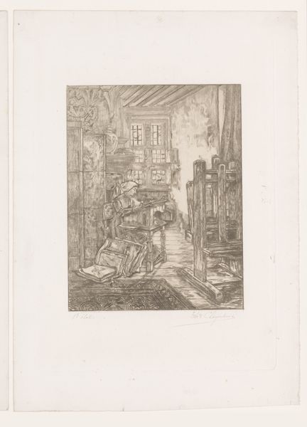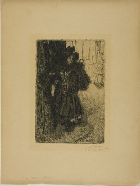 Auguste-Louis Lepère made "Le Nys, Amsterdam" using etching, a process that's all about lines and seeing where they lead. Think of it as drawing with acid, kind of wild, right? The whole scene is rendered with these flickering, almost frantic lines that give it a real sense of energy. Lepère really knew how to make a mark do a lot of work. Look at the way he builds up the shadows with these dense clusters of lines, then lets the paper breathe with just a few sparse strokes. There is this one guy in the front, his face a mask of glee or something a little more manic – it's hard to tell, and that's what's so great about it. It reminds me a little of James Ensor, that Belgian weirdo, who was also into these kinds of bustling crowd scenes. Ultimately, this print is about seeing and feeling, not just knowing.