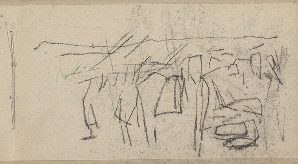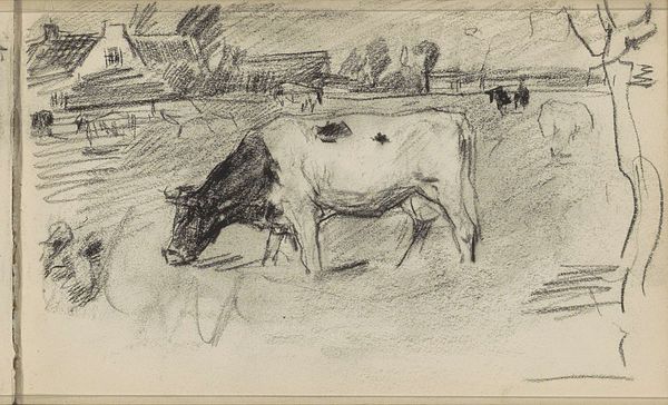 Editor: So, this is "Koeien," or "Cows," by George Hendrik Breitner, made sometime between 1886 and 1890. It looks like a pencil sketch on paper, currently held at the Rijksmuseum. It feels very raw and immediate. What stands out to you when you look at this piece? Curator: What grabs me immediately is its incompleteness, almost a protest against the polished academic style of the time. Consider Breitner's focus on working-class Amsterdam. These sketches, even unfinished, are critical. How do they challenge the dominant narratives of Dutch art which often favored idealized landscapes and bourgeois life? Editor: That’s interesting. I hadn’t thought of it that way. So you’re saying the unfinished nature of the sketch itself becomes a statement? Curator: Precisely. Breitner was part of a movement that embraced realism, turning away from romanticized depictions. He chose subjects from everyday life - laborers, street scenes, and in this case, farm animals. This almost feels like a subversive act, wouldn’t you agree? Do you see anything in the composition itself that supports this? Editor: Well, the composition isn’t classically beautiful. The cows seem almost clumsily rendered, and the background is barely suggested. Curator: Exactly. It's less about aesthetic perfection and more about capturing a fleeting moment. Consider the role of animal labor in Dutch society at the time. What statements about industrialization or social hierarchies might Breitner be subtly making by choosing this subject? Editor: So, rather than just seeing cows, we should consider the social and economic context surrounding them and Breitner’s choice to depict them this way? Curator: Precisely. It challenges us to rethink what is considered worthy of artistic representation. What began as a quick sketch in a notebook really holds much broader statements when looking at context. Editor: That’s really given me a new way to think about sketches – it isn't just preparatory work. Curator: Yes. Breitner elevates the mundane to something worthy of contemplation, shifting our understanding of both art and the everyday.
