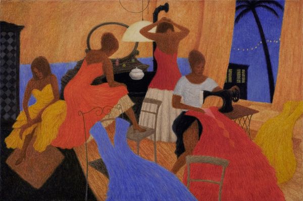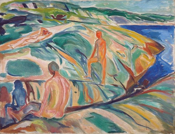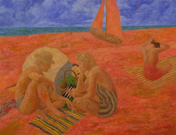 Iwo Zaniewski created this artwork, “On the Beach with a White Umbrella”, with an unknown medium. We can understand it as a comment on leisure and social interaction. The artwork appears to depict a group of people relaxing on a beach, possibly somewhere in Eastern Europe given the artist's Polish origin, though the exact time is hard to place. Zaniewski's use of light and shadow creates a sense of mystery and ambiguity and also the depiction of figures seems to have a racial subtext. The figures are positioned in a way that invites the viewer to consider their relationships and dynamics. The white umbrella serves as a focal point drawing the eye and perhaps symbolizing protection or escape. To gain a deeper understanding, we could explore Zaniewski’s biography, Polish social history, and the cultural context in which he was working. Examining art criticism and reviews of his work might reveal how the artwork was received and interpreted at the time. This reveals how the meaning of art is always shaped by the society and institutions that surround it.
