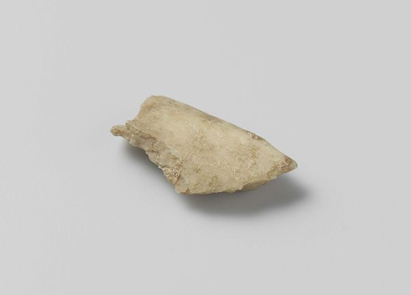 Editor: Here we have a photograph of an Erosaria spurca shell, which was recovered from the wreckage of the Dutch East India ship Witte Leeuw, dating from before 1613. It looks like the shell's been through quite a bit, its surface worn and textured. What strikes you most about this particular object? Curator: Primarily, the shell offers a stark example of material presence transcending time. Note the muted palette, almost monochrome, rendered through the photographic medium. The degradation, those subtle tonal shifts and eroded textures, speak directly to the effects of prolonged submersion and the inherent mutability of matter itself. How does the composition impact your understanding of its aesthetic value? Editor: I suppose it makes it feel… heavier? More permanent, somehow. Given it’s just a photo, anyway. What can you tell me about how shape informs meaning? Curator: Observe how the ovoid form, gently truncated, suggests both organic growth and violent disruption. The shell's inherent spiral is obscured, hinting at the incompleteness of our understanding and the destructive potential of time. Semiotically, consider what this disrupted natural form, meticulously captured, conveys about humanity’s relationship with nature. Editor: So, it’s less about what the shell *was* and more about what it *is*, its current state? Curator: Precisely. Its formal qualities – the texture, the monochromatic tone, and the composition – invite contemplation on decay, preservation, and the passage of time. Did anything shift in your perception of it? Editor: Definitely! I hadn’t considered how the degradation itself becomes a key part of the image's narrative. Now I see the picture less as a photograph, but as an exercise in appreciating shape and the image’s tone itself. Curator: And, hopefully, a meditation on the power of visual analysis.