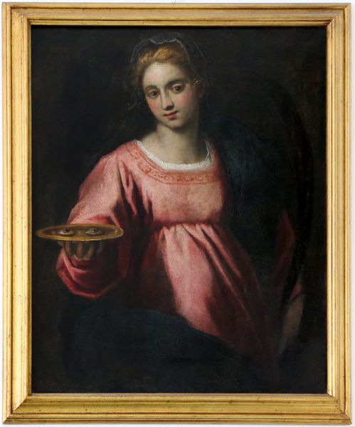 Curator: What a poignant image. Guido Reni painted "Magdalene With The Jar Of Ointment" sometime between 1640 and 1642, during the height of the Baroque period. Editor: Yes, that period practically radiates drama. But this, surprisingly, feels very contained. It’s almost as if the painting itself is holding its breath. The limited color palette and soft edges contribute to a solemn, subdued tone. Curator: It is fascinating how Reni utilizes the Baroque chiaroscuro, that play of light and dark, not for grand theatrics but for introspective examination. We have to remember the context: images of Mary Magdalene served a crucial function in Counter-Reformation art, offering viewers a potent example of repentance and redemption. Editor: Precisely! The jar is really drawing me in here. The shape, round and full, is beautifully echoed in the soft curves of the Magdalene's face. Her pale hands, how she gently cradles it – all adds to a sense of delicate contemplation, and I'd argue that the overall effect of it adds grace, like a melancholic song. Curator: Considering Reni's popularity among aristocratic patrons, particularly within the papal states, images such as these were undoubtedly intended to shape ideals of feminine piety. She embodies beauty, but it’s a beauty tempered with humility and remorse. It mirrors, too, the political aim of promoting a message that even a sinner can ascend to great things through genuine devotion and acceptance into a new role in the ecclesiastical order. Editor: Her gaze avoids our own. Instead, her eyes are focused towards something beyond the physical space of the painting. As a study in form, her modest appearance draws attention back into herself in that solitary moment, as we gaze upon a person who seems so absorbed with the burden or blessing she carries, at that same moment. Curator: Looking at Reni’s Magdalene, I find myself pondering how artists leverage archetypes to influence viewers across societal strata. This wasn’t merely art for art’s sake; it served very specific cultural work. Editor: Indeed, but it transcends mere didacticism by offering a beautiful study of light and feeling.