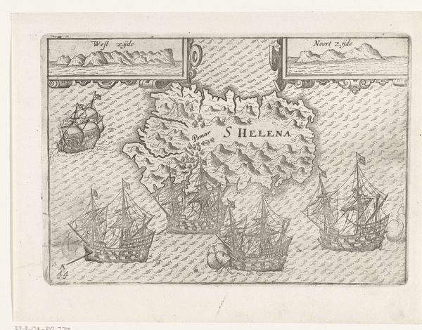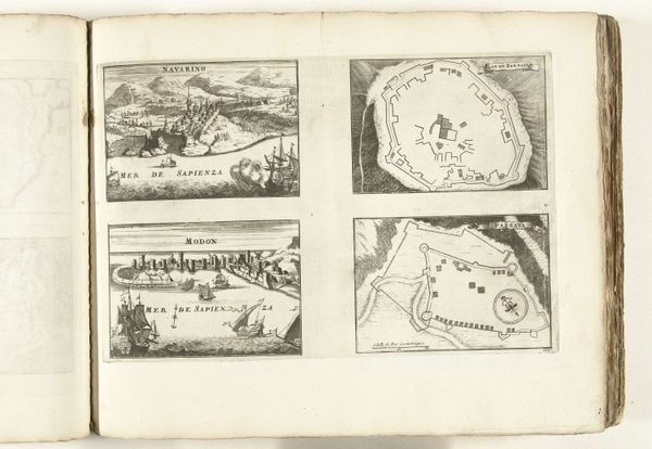 This 1616 map, created by an anonymous artist, depicts the islands of Makian and Bacan in the Moluccas. At first glance, the copperplate engraving presents a structured layout, divided into distinct sections, each offering a different perspective of the islands. The islands, rendered with meticulous detail, are contrasted by the stark lines and geometric precision of the settlement. Here, the artist uses a semiotic system, employing visual signs that not only represent physical space, but also delineate power structures and colonial claims. The map challenges our understanding of space as a neutral entity, revealing it instead as a field of encoded meanings and cultural narratives. Consider the formal composition—how the artist juxtaposes organic forms with geometric ones, inviting us to decode the complex relationship between nature and human intervention. In this map, form functions not merely as aesthetic, but as an integral part of a broader cultural and philosophical discourse on colonialism and representation.