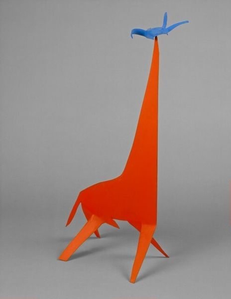 Alexander Calder made this bull sculpture, its date unknown, using painted sheet metal. This material is key to understanding the artwork. Rather than carving or modeling, Calder cut and shaped the metal, a decidedly modern process. The metal's inherent qualities influence the sculpture’s appearance. Its thinness allows for a sense of lightness and dynamism, defying the traditional weightiness associated with sculpture. The flat planes of color and the sharp angles give the bull a graphic, almost cartoonish quality. Calder employed techniques more akin to fabrication than fine art. This deliberate choice blurs the boundaries between sculpture and industrial design. By using sheet metal, Calder tied his work to broader social issues of labor and mass production. The production process, while appearing simple, requires careful planning, precise cutting, and skilled assembly. It is this combination of material, making, and context that gives the work its full meaning, challenging our expectations of art.