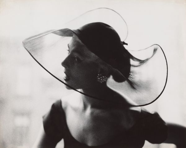 Curator: Looking at this photographic print titled "Scherzo di Follia," produced sometime between 1861 and 1932 by Pierre-Louis Pierson, I'm immediately struck by its uncanny, dreamlike quality. Editor: The single visible eye framed by an oval and the severe rectangular mask—it speaks to restriction and an almost theatrical surveillance. I wonder about the context of masking here, especially combined with the title's suggestion of madness. Curator: Masks were very present at court where Pierson was taking photos of the Countess. There is a strong sense of play with the materiality of photography itself; the manipulated surfaces, the props employed... it seems to undermine straightforward representation. One must keep in mind it's a photograph of Countess de Castiglione. The Countess’ obsessive involvement and control over the production of her images were legendary, she used it as a means of controlling her image as well as preserving her looks. Editor: The visible eye certainly anchors the composition. Throughout history, the eye has served as a potent symbol for insight, vigilance, even divine judgment, hasn’t it? Here, it's simultaneously exposed and concealed. Curator: I think so, especially regarding what she was wearing for the photoshoot, this play is a key element in understanding it. Her hand position, with a visible ring, plus the texture of what appears to be a necklace -these details hint at a complex social world but the fragmentation resists any unified narrative. There's a conscious construction of persona happening here. The making of identity as performance! Editor: Performance indeed. It’s almost as if Pierson and de Castiglione are crafting a symbolic language—one that hints at hidden narratives of beauty, power, and the theater of the self. I am eager to see the kind of material available regarding these pieces. Curator: Precisely. By foregrounding the performative and constructed nature of identity, Pierson gives the stage to reveal how she viewed herself. What is more, this forces us to consider her in the space in which the image was born. I believe further viewing would yield further context in which she existed. Editor: Ultimately, the photograph pushes us to look deeper, both at the subject and at the very act of looking. Fascinating piece.