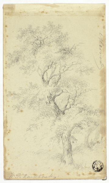 Editor: This drawing, called "Treetop" by Peter Becker, appears to be a pencil sketch on paper, maybe even from a personal sketchbook. It’s rendered in very fine lines. I'm curious, what visual elements stand out to you in this particular piece? Curator: The composition intrigues me most. Observe how the artist employs a predominantly linear style to articulate the complex organic structure of the treetop. Notice the intricate web of lines, varying in weight and density, that define the form and texture. Editor: Yes, it feels very immediate and observant! Is it trying to be realistic? Curator: Reality is a construct of perception. Consider the artist’s deliberate choices in mark-making: the frenetic energy in some areas contrasts with the delicate precision elsewhere. This contrast establishes a visual rhythm, drawing our eye across the surface. How does the distribution of light and shadow contribute to the overall structure, would you say? Editor: I see how some of the lines are darker, almost as if he went over them multiple times to add depth and weight, but others are very light and create almost a wispy feeling. I'm now noticing the shapes made by the negative space in between the branches too, which is interesting. Curator: Precisely! The interplay of positive and negative space is vital. Furthermore, analyze the orientation of the lines. Do they converge, diverge, or remain parallel? The artist's manipulation of these formal elements dictates our understanding of the depicted subject matter. Editor: Thinking about just line, shape and space has changed how I see it. I realize I wasn't focusing on those basic elements before. Thanks! Curator: Indeed. By focusing on the inherent qualities of the artwork, we can arrive at a deeper appreciation of its artistic merit and learn to focus on our own biases in our interpretation of artworks.