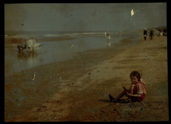 Adolphe Burdet made this small picture of two children playing on a beach, we think, sometime in the early 20th century, using a photographic process that gives it a muted, almost watercolour-like feel. What strikes me is the surface quality, it’s almost dreamlike. The way the light reflects off the wet sand, blurring the boundaries between the figures and their surroundings, it’s as though the scene is half-remembered. The children, dressed in red overalls, seem to be caught in a moment of pure, unselfconscious play. Look at the way the artist has captured their gestures, the sense of movement in the way the light catches on the water droplets, it’s like a fleeting memory made visible. There's something about the ordinariness of the scene that elevates it. It reminds me a little of some of the early colour work by Helen Levitt, a similar feeling of capturing a transient moment of everyday life. It’s a reminder that art doesn’t always have to be grand or monumental, sometimes it’s the small, intimate moments that resonate the most.