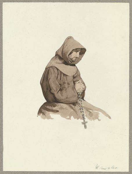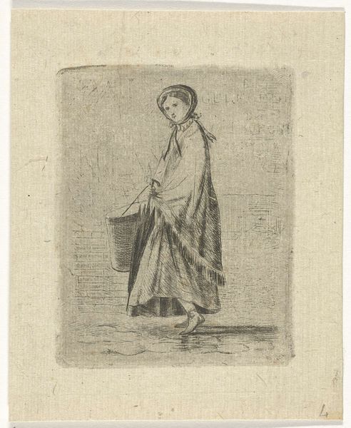 Editor: This is "A Seated Shepherdess," a pencil drawing by Jules Dupre. I find it quite evocative; there's a sort of wistful mood in her gaze. How would you interpret this drawing, considering Dupre's focus on landscape and rural life? Curator: For me, the drawing speaks to the Romantic era's idealization of the working class, but seen through a lens of materiality. Look at the textured paper, the varied pressure of the pencil – each mark a deliberate act of labor, echoing the shepherdess's own daily work. It's not just an image, but a record of process. How does the seemingly incomplete nature of the sketch affect your understanding? Editor: I suppose the sketchiness suggests that this piece might be a study, maybe for a larger work. Does that affect how we understand Dupre's depiction of the shepherdess and the rural landscape? Curator: Absolutely. Knowing that this might be a study reframes it. We start to consider Dupre's own labor in producing the artwork. It highlights the commodification of even the simplest of rural existences for consumption by the art market. Did Dupre truly represent the life of a shepherdess, or did he reproduce his own romantic notions about work? Editor: That’s a great point! It pushes you to think about the exchange that takes place when someone's daily reality is translated into an artwork. Thanks! I'm seeing so much more here. Curator: And hopefully, a fresh understanding of the artistic process and its relation to social conditions. It's not just about beauty, but about production.