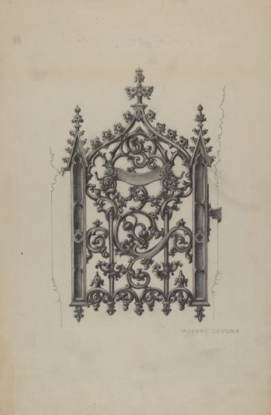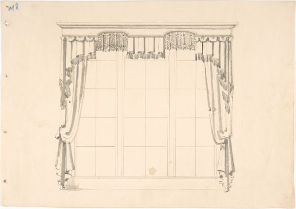 Editor: Here we have "Design for Gothic Curtains and Curtain Rod" created between 1841 and 1884, attributed to Charles Hindley and Sons. It's a drawing, mostly pencil on paper, currently held at the Metropolitan Museum of Art. The detail is incredible, and it gives off such an opulent, almost theatrical vibe. What strikes you when you look at it? Curator: Well, beyond the aesthetic impression, I am immediately drawn to the labor involved. Think about the craftspeople who would have been involved in realizing this design. The draughtsman, of course, but also the weavers, the dyers, the woodworkers crafting the rod and decorative elements. Were they fairly compensated? What were their working conditions? Editor: That's a completely different angle than what I was considering. So, you’re looking past the intended elegance to the socio-economic implications of creating such a luxurious item? Curator: Precisely. We see the design, but what about the means of production? The pencil lines on this paper represent a chain of human activity, extracting resources and transforming them, often unequally. Consider how the consumption of these elaborate curtains may have reinforced social hierarchies, highlighting disparities between those who could afford such luxury and those who could not. What sort of power dynamics does that reinforce? Editor: So you see this drawing not just as a design for curtains but as a document reflecting the era's material culture and labor practices? Curator: Absolutely. This piece reminds us to question what isn’t immediately visible. By exploring these questions, we begin to unravel the complex relationship between art, labor, and consumption. Editor: I will certainly never look at fancy curtains the same way. I learned a lot. Curator: And I believe questioning our roles in production of this historical narrative offers us new ways to explore materiality today.