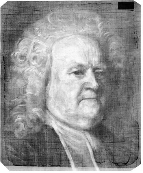 Curator: It has the quality of a half-remembered dream, almost ghostly. Editor: This is an X-radiograph of John Singleton Copley's portrait "John Barrett," housed here at the Harvard Art Museums. It’s not the painting itself, but rather an X-ray revealing its internal structure. Curator: That explains the ethereal quality. It’s like seeing the bones of a painting, its hidden architecture. Editor: Exactly. What strikes me is the potential for examining the history embedded in the painting. What was Copley thinking, and how does this image disrupt our understanding of portraiture? Curator: It makes me think about what we choose to reveal and conceal. The history of art is the history of power, after all, but this shows its structure. Editor: True. This image really reframes the conversation, inviting us to look at not just what's on the surface, but what lies beneath. Curator: It feels like a peek behind the curtain, doesn’t it? Editor: Yes, a ghostly peek that challenges us to reconsider the narrative.