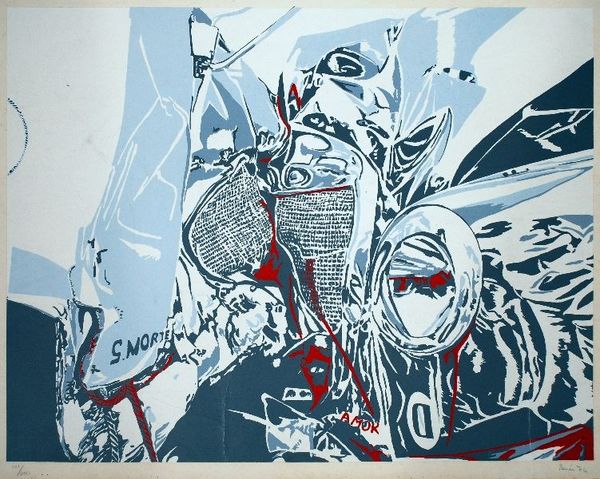 Sandra Chevrier made this painting, La Cage et le canon de la totalité, with a bold blend of realism and comic book aesthetics. There's a push and pull between the precise rendering of those eyes and the distorted, graphic chaos surrounding them, a tension that really grabs you. The texture is wild, right? It's like Chevrier is playing with the idea of layers, both physical and psychological. The comic book elements, with their flat colors and bold lines, feel like they're both obscuring and revealing something deeper. I'm drawn to the way the colors melt and drip, creating these vertical rivulets that feel both destructive and strangely beautiful. It makes me think about how we construct our identities, piecing together fragments of pop culture, personal experiences, and societal expectations. Chevrier's work reminds me a little of early James Rosenquist, with his fragmented imagery and commentary on consumer culture, but her approach feels more personal, more intimate. Ultimately, it's a piece that revels in contradiction, inviting us to question the narratives we tell ourselves and the world around us.
