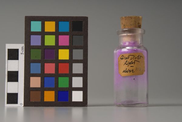 Curator: Here we have "Manganese Violet," an intriguing piece manufactured by F. Weber & Company. What strikes you first about it? Editor: The color, undoubtedly. That vibrant violet leaps out—it has a jewel-like quality, almost otherworldly. Curator: It's fascinating how a single pigment can carry so much cultural weight. Violet, historically associated with royalty, spirituality, even mourning. Editor: And the industrial production of color is itself a story about democratization of access and the changing role of art materials within a society. Curator: Absolutely, considering the psychological impact of color, it's interesting to ponder how the accessibility of certain hues influences emotional expression and collective memory. Editor: Indeed, it makes you wonder about the unseen forces shaping our visual culture. Curator: This has been a thought-provoking examination. Editor: Agreed, this dialogue has cast a new light on the politics of color.