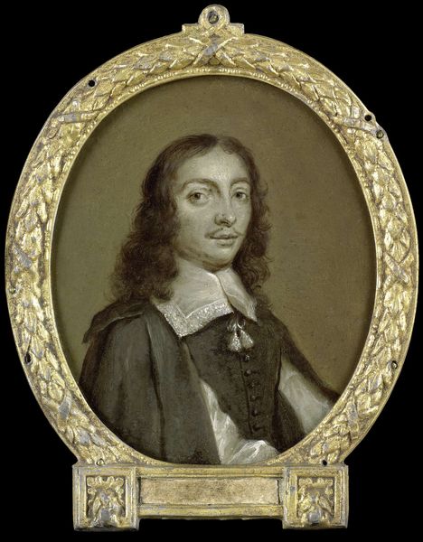 Arnoud van Halen painted this portrait of Willem Ogier, a dramatic poet in Antwerp, likely in the early 18th century. Ogier's likeness, framed in gilt, speaks to the cultural values placed on artistic and intellectual figures in Antwerp at the time. Consider Antwerp's history as a center for artistic production and theatrical innovation. Ogier's prominent collar and poised demeanor reflect a careful construction of identity, signaling his status within Antwerp's cultural elite. Van Halen, working within this context, capitalizes on the demand for portraiture among the city's literati. The very act of commissioning and displaying such a portrait highlights the complex interplay between artistic patronage, social ambition, and the shaping of cultural memory within a specific time and place. To truly understand this image, one must delve into the archival records of Antwerp's artistic and theatrical circles, tracing the networks of patronage and influence that shaped both Ogier's career and van Halen's artistic practice. The meaning of art is always contingent on the social and institutional context in which it was made.
