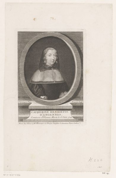 This is an engraving of Madame Bouthillier (Marie de Bragelogne), made by an anonymous artist. Let's consider what it meant for a woman to be publicly represented through art in this era. Madame Bouthillier, a woman of nobility, is portrayed with a certain gravitas, yet her identity is mediated through the male-dominated art world. The very act of creating a “reverse copy” suggests a layering of interpretations and perhaps a distancing from the original subject. The act of reproducing her image raises questions about authenticity, representation, and the power dynamics inherent in portraiture. What does it mean to copy a copy, and how does this process affect our understanding of Madame Bouthillier herself? The emotional resonance here lies in the echoes of a life lived, filtered through the hands and perspectives of others. Perhaps in viewing this work we can consider the many ways women's identities have been mediated through art, and how these representations both reflect and shape our understanding of history.