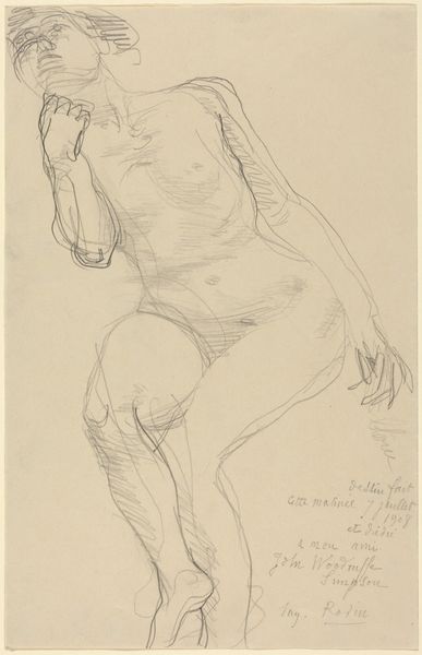 Editor: Here we have Louis Anquetin's "Torso van atleet (Hercules?)" – or "Torso of an athlete (Hercules?)" made sometime between 1871 and 1932, using pencil. There's an incredible sense of weight and strength, even though it's just a sketch. What do you see in this piece, in terms of its broader context? Curator: Well, immediately, the classical subject matter through the lens of a rapidly modernizing world jumps out. Anquetin is looking back to the heroic male form, a staple of classical art, but doing so amidst industrialization and shifting gender roles. How does idealizing this hyper-masculine figure potentially function as a response to anxieties about changing power dynamics in society? Editor: That’s a great point. The figure almost feels like a challenge or a statement. Are you suggesting that Anquetin is grappling with the changing role of men during his time? Curator: Precisely! This isn't just a study of anatomy; it's a potential assertion of traditional masculinity in an era questioning those very traditions. Consider also, the "Hercules?" in the title, positioning this powerful male nude within mythology; connecting present strength with foundational narratives. This is further supported by pencil, an accessible and reproductive medium allowing wider circulation. Is he mythologizing the male nude through a lens of classicism, nostalgia, or reaction? Editor: It’s like he's drawing a line between ancient ideals and the concerns of his contemporary world. I’m struck by the interplay between technique, subject and time. Curator: Exactly. And thinking about art and activism together allows us to view these images not as stagnant images, but rather, records of dialogue surrounding cultural values. Editor: I’ll never look at another drawing the same way! Thanks for making me think critically.