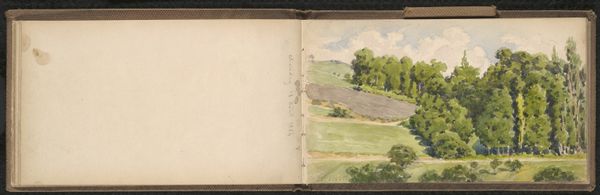 Editor: We're looking at "Heuvellandschap tussen Celleno en Grotte Santo Stefano," a landscape drawing by Abraham Teerlink, dating from somewhere between 1808 and 1857. It’s currently housed at the Rijksmuseum. There’s something really delicate about this work. It’s almost faded, and quite loose, as if capturing a fleeting impression of the landscape. How do you interpret this piece? Curator: Indeed, this sketch, likely from a personal sketchbook, speaks volumes about the artist's process and the cultural context of landscape art at the time. Consider the rise of Romanticism. Artists were increasingly interested in capturing not just the literal appearance of nature, but also its emotional impact. The light pencil and watercolor work suggests a focus on immediacy, perhaps even the sublime. Editor: So, it’s less about topographical accuracy and more about… feeling? Curator: Precisely. How does the format, this being in a sketchbook, influence its reception? Editor: Well, knowing it’s from a sketchbook gives it a sense of intimacy. It feels like a glimpse into the artist's private world. Maybe this was never intended for public display but instead reflects personal contemplation of nature's beauty. It reminds us that art's meaning shifts depending on where and how it's displayed and who gets to see it. Curator: Exactly. The Rijksmuseum displaying a seemingly private sketch elevates it to a public artwork. We, as viewers, participate in reshaping its meaning. We grant a personal record significance by considering it in historical context. It reflects how institutions shape our perception and appreciation of even seemingly simple sketches. Editor: I never considered that! This discussion really highlighted how the historical and social context completely reframes how we see art. Curator: And understanding that process, of reframing, deepens our engagement with both art and its history.