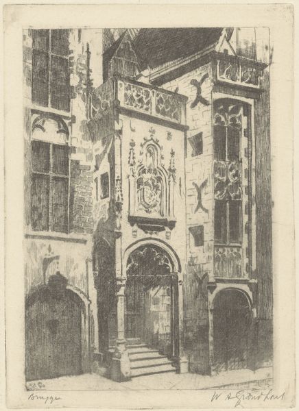 Carel Frederik Bendorp created this drawing of ‘De Kloveniersdoele’ with pen in 1841. Immediately, the facade’s geometrical articulation impresses upon us. The orderly, rectangular structure of the building is sharply rendered in cool light, with the tonal contrasts precisely defining each stone and window. This precision, however, is destabilized by the artist’s hand; the lines, while suggesting rigid forms, betray a looseness. Look at the way the light gently fades in areas, softening the edges of the architecture and inviting contemplation. Bendorp plays with the tension between objectivity and the subjective experience of viewing. The calculated portrayal of form meets an atmospheric effect which transcends pure documentation. The drawing thereby transcends its subject, becoming a meditation on light, form, and the very act of seeing. It prompts us to consider how we perceive structure in a state of flux.