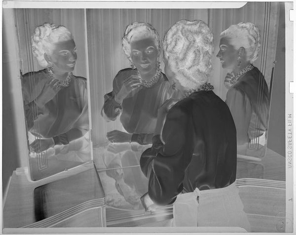 Curator: This photograph by Martin Schweig, currently titled "Untitled," shows a man taking a woman's temperature inside what appears to be a medical trailer. Editor: The starkness strikes me. It's a very clinical tableau, yet the floral curtains lend an unexpected domesticity. Curator: Indeed. The setting speaks to a specific historical context—perhaps a mobile health clinic, reflecting post-war efforts to extend medical care to underserved communities. Editor: I see the vulnerability in the woman’s posture and the trust she places in the medical professional. Health, historically, is laden with symbols of power and care. Curator: Precisely. And the anonymity allows it to represent broader themes of public health, accessibility, and even the anxieties surrounding medical examination. Editor: The play of light and shadow almost gives it a documentary-like feel, hinting at a moment caught in time, an ordinary act imbued with a larger cultural significance. Curator: An important reminder of how visual records help us interpret shifting priorities in healthcare. Editor: Absolutely. A simple image evoking intricate layers of history and meaning.
