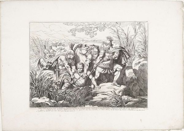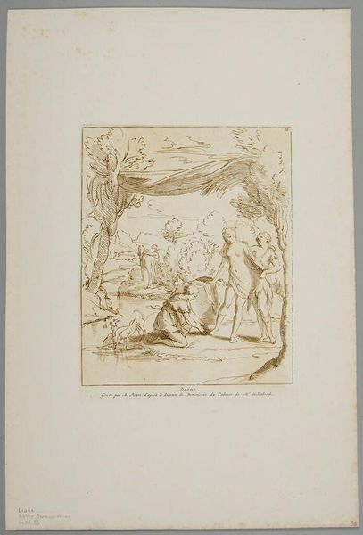 Curator: Let's look at Carl Wilhelm Kolbe's "Herdsman Resting with His Dog and Ox." This piece, housed at the Harvard Art Museums, presents a pastoral scene, seemingly simple at first glance. Editor: Immediately, I'm struck by the density of the etching. The layers of fine lines build such depth and texture, especially on the ox's coat. You can almost feel the animal's weight. Curator: Kolbe was working during a time when such images reinforced societal ideas about rural life, often romanticizing the labor involved. The composition encourages a sympathetic view of the herdsman's rest. Editor: But there’s labor evident in the very process! Think of the physical act of etching, the repetitive scoring of the plate. That repetitive action mirrors the daily grind of agricultural work. Curator: Interesting comparison! Kolbe’s image reflects a larger cultural narrative about the virtues of nature and the working class, yet it’s mediated through artistic technique and patronage. Editor: Right, and acknowledging that labor helps us see beyond just the idyllic fantasy of leisure. It adds another layer of value. Curator: A valuable perspective that helps appreciate the artwork’s complex meanings. Editor: Exactly, seeing the materials and processes really shifts your appreciation.