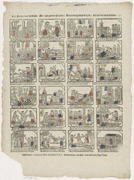 This undated print by Erven Hendrik van der Putte, now in the Rijksmuseum, offers us a window into the moral and social values of the Dutch Republic, likely around the 17th or 18th century. The print, titled "Kinders hier ziet gy aardig af-geprent" which translates to “Children, here you see a nice print” and subtitled "Duyfken en Willemeynkes leven exelent" or “The excellent life of Duyfken and Willemeynke", is laid out as a series of vignettes. Each scene illustrates moments in the lives of Duyfken and Willemeynke, likely allegorical figures representing ideal childhood behaviors. The images, combined with the didactic text, would have served as a moral compass, guiding young viewers towards piety, obedience, and industry - virtues highly prized in the mercantile culture of the Netherlands. The print thus acts as a historical document, reflecting the era’s pedagogical strategies and the social expectations placed on children. To fully understand this piece, one would delve into period literature on child-rearing, religious texts, and the economic conditions that shaped family life in the Dutch Republic.