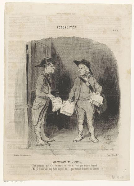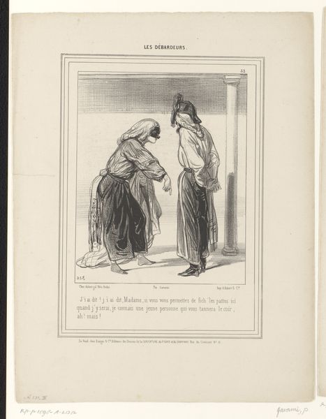 This lithograph, by Honoré Daumier, presents a scene of Parisian street life. Here, we observe the figures of two men, their garments and postures speaking volumes about their station in life. One man is dressed in what appears to be a Bedouin-style outfit; while the other, in more modern attire, leans on a cart. Observe the attire. The so-called Bedouin dress becomes a marker of exoticism, a costume donned to navigate and perhaps exploit the Parisian fascination with the "Orient." It's a symbol of the cultural appropriation often seen when societies collide. This relates to similar masquerades and imitations throughout history—think of Renaissance festivals emulating ancient Roman garb, or modern reenactments of historical events. There’s a psychological weight to this mimicry; a longing to connect with something perceived as different, more authentic. Yet, this very act can strip the original culture of its true meaning. The psychological tension between admiration and exploitation reveals much about how societies perceive and interact with one another. This theme, like a returning ghost, shows the cyclical nature of cultural perception, constantly reappearing with new contexts and new faces.