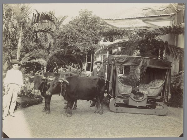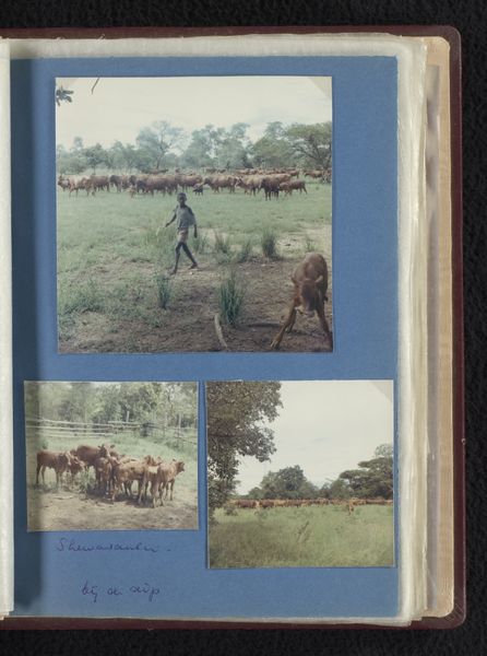 Curator: Welcome to this exploration of Willem Jacob van den Berg's photographic work. We’re looking at "Afrikaner rundvee op de boerderij van Willem van den Berg in Transvaal, Zuid-Afrika", captured sometime between 1967 and 1971, a gelatin silver print depicting cattle on a farm. Editor: Gosh, that’s a mouthful! What strikes me immediately is this intense quiet. Despite the herd of cattle and the farmhand in the background, it exudes a calm almost melancholy atmosphere. Like time is suspended. Curator: Interesting. Methodologically, I’m drawn to the contrasts in light and shadow; it articulates depth within the composition, differentiating the herd's masses. The spatial organization reflects elements of classical landscape photography—the horizon, for instance. Editor: I see them too, but that starkness makes me a little uncomfortable, especially given the era it's from. It’s as though something lies unseen beneath this documentary surface, raising uneasy questions about land, ownership and maybe even legacy. It might simply show an aspect of ordinary farm life from the time. Curator: Certainly, the formal strategies—realism manifested via photography—foreground a certain empirical truth claim. Though, from a semiotic viewpoint, the repetitive figures of the cattle risk allegorizing a commentary on labor, or maybe a national mythos, or an old testament narrative. Editor: Oh, national mythos alright; something tells me we don't even want to go there… but if you look at it from a perspective like that it becomes an interesting way of dealing with questions like colonialism or maybe land appropriation without saying too much directly, like whispers in black and white. Curator: Indeed, while Van den Berg is celebrated for imbuing everyday scenes with a particular formal clarity, these inherent tensions certainly enhance an introspective encounter. Editor: It definitely goes beyond just cows in a field. And yet, cows in a field it also really is. Quite a thought provoking juxtaposition if you think about it like that.