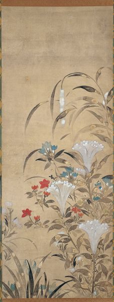 Suzuki Kiitsu created 'Poppies', a hanging scroll painting, using ink and color on silk. Unlike the industrialized processes we often associate with art production today, this work embodies a deep connection to traditional craft. The silk support itself speaks to a history of skilled labor. Producing fine silk involves cultivating silkworms, reeling the delicate threads, and weaving them into fabric, often by hand. The application of ink and mineral pigments requires precision and control. Notice how the artist uses subtle gradations and delicate brushstrokes to capture the texture and form of the poppies. Kiitsu’s training in the Rinpa school emphasized not just technical skill, but also an intimate understanding of natural forms and the changing seasons. By engaging with these materials and processes, Kiitsu connects with a rich cultural heritage. It’s a reminder that art-making is often deeply embedded in broader social and economic systems. This piece asks us to reconsider the amount of work, and cultural value involved in its production.