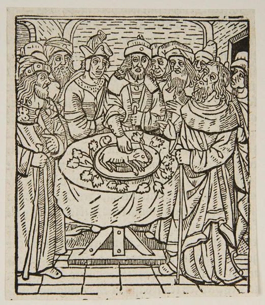 Editor:Here we have an anonymous piece, "The Raising of Lazarus," from the Harvard Art Museums. The dense composition and the linear quality of the printmaking really strike me. What can you tell me about this work? Curator:Considering its likely production as a popular print, the roughness of the woodcut reveals a focus on dissemination over artistry. How do you think the material process affected its reception and purpose within the community? Editor:That's interesting, I hadn't considered that. It makes you think about the role of the artist, or lack thereof, and the labor behind these images. Curator:Exactly. The image served a function, perhaps devotional or didactic, and the means of production dictated its accessibility and visual style. Reflect on how this differs from, say, a commissioned painting. Editor:I see. So it's not just about the image itself, but the whole context of its making and distribution. Thanks, that's really helpful. Curator:Indeed. It prompts us to consider art not just as an aesthetic object but as a product deeply embedded in its social and economic conditions.