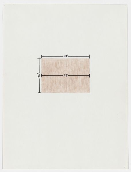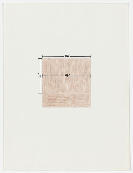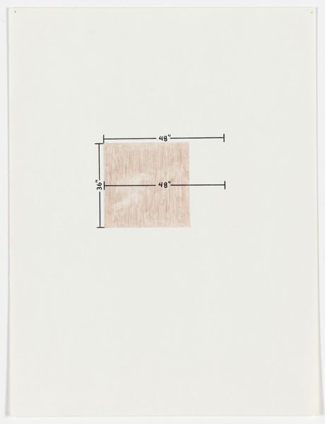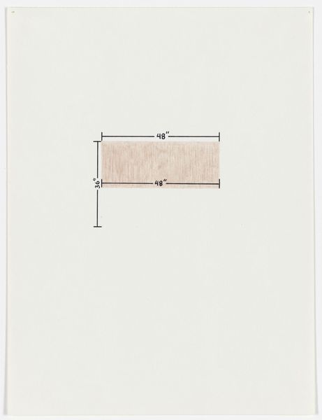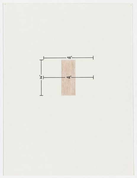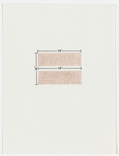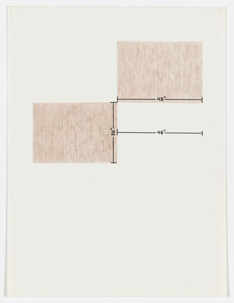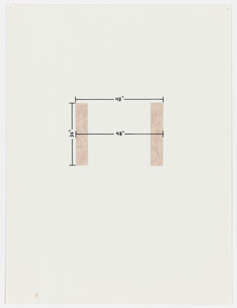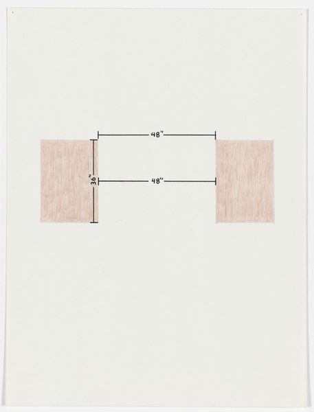 Curator: Mel Bochner's "Drawing for '48' Standards'," a small work currently housed at the Harvard Art Museums, presents two rectangles seemingly floating on the paper, each meticulously labeled "48"," with a vertical line indicating "36." Editor: My first thought? It feels so…deliberately uneventful. Like a blueprint for a perfectly ordinary piece of lumber. Is it supposed to be challenging my expectations of art? Curator: Precisely. Bochner, emerging in the conceptual art scene, often questioned traditional art values. The work challenges the very notion of art production and invites us to consider the underlying structures that dictate what we perceive. Editor: I get it. He's turning the mundane into something worth contemplating. It still feels like I am missing something, but maybe that is the point. Curator: Perhaps. It's a quiet rebellion against the spectacle, wouldn't you agree? Editor: Absolutely. An exercise in finding meaning in the expected, maybe.