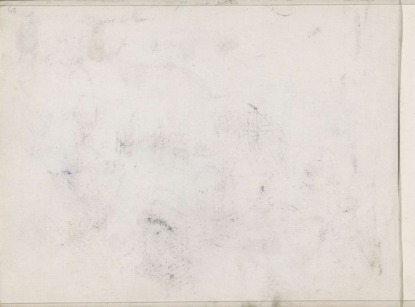 Editor: Right now, we’re looking at "Abklatsch van de krijttekening op blad 17 verso", or "Blot of the chalk drawing on sheet 17 verso." It’s a pencil drawing on paper done by Isaac Israels sometime between 1875 and 1934 and held at the Rijksmuseum. The immediate impression is faint and mysterious; it almost vanishes into the page. What secrets do you think are hiding in this sketch? Curator: Secrets indeed! It's like looking at a whisper, isn't it? I see the ghost of a landscape – perhaps trees and fields under a vast, hazy sky. Israels captures a feeling more than a precise image. Notice the technique – how the faintest lines suggest form, relying on suggestion rather than definition. It reminds me of trying to grasp a fleeting memory; the harder you try, the further it slips away. Ever feel that way? Editor: Absolutely! It feels almost like looking at a dream. It makes you wonder about Israels’ process here... was he just playing with impressions, or trying to capture a specific place? Curator: That's the enchanting thing about Israels – he leaves it wonderfully open to interpretation. Was it a preparatory sketch, a passing fancy, or something more? The “blot” in the title implies an accidental quality, which I love. But maybe that perceived accident *was* the point? What do *you* think it evokes? Editor: I see a sense of transience and fragility. It reminds me of how quickly a moment can disappear, leaving only the faintest trace behind. Curator: Beautifully put! And isn't that a powerful message delivered through such ethereal means? Sometimes the quietest voices speak the loudest truths. I hadn't thought of it that way myself, until you brought it up! Thanks for sharing your perspective. Editor: Thanks so much for yours too! It's amazing how a seemingly simple drawing can hold so much.