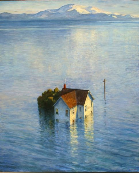 Mark Beck’s painting, "The Family" presents a solitary house perched on the edge of the land, set against a vast, moody seascape. The house, a symbol of shelter, is painted in pale hues, drawing our eye to the dark horizon behind it. This image of a lone dwelling has echoes in art across the ages. Think of Caspar David Friedrich’s wanderers gazing at landscapes; the solitary figure is replaced by a solitary home. The house becomes a vessel of introspection, a symbol of the self in confrontation with the immensity of the world. Here, the vast sea is full of subconscious yearning, a mirror reflecting the psychological depths of human existence. The emotional power of this image resides in the tension between the intimate and the infinite. The artist taps into our collective memory, a deep-seated awareness of our place in the cosmos, evoking a feeling of both safety and vulnerability. It is a symbol that resurfaces, evolving as it reflects the shifting currents of human experience.