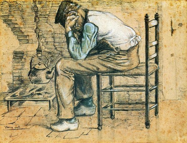 Ferdinand Hodler captured this figure in watercolor and pencil, his weariness palpable through the stooped posture and the downward cast of his face. The man leans heavily on a cane, a symbol traditionally associated with guidance and support, yet here, it seems to barely sustain him. Observe how the motif of the burden echoes through time. We see it in depictions of Atlas, forever bearing the weight of the world on his shoulders, or even in medieval images of melancholic figures weighed down by their own thoughts. The physical manifestation of inner turmoil transcends eras. Consider the emotional weight Hodler conveys through the man's dejected stance. It speaks to a universal human experience – the moments of despair and introspection that define our shared consciousness. This image is not merely a portrait but a mirror reflecting our collective struggles.
